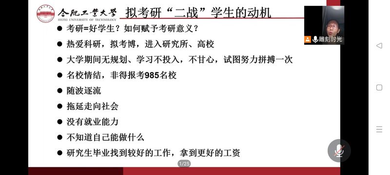 会议围绕毕业生学业完成情况、毕业设计任务完成情况、就业与考研“二战”、文明安全离校四部分展开,李艳老师指出家长要加强与员工沟通交流,关注员工心理健康,与教务老师联络,确保孩子能顺利完成学业任务,督促孩子严格按照毕业设计要求完成任务,把握关键时间节点,及时调整心态。此外,李艳还从拟考研“二战”员工动机、“二战”需谨慎、考公形势严峻三个角度出发,解读员工“二战”、考公心理,助力家长与孩子的有效沟通。最后李艳从爱校荣校、文明离校等方面出发,提醒毕业季是心理问题的高发季,需要父母时刻关注员工动态,及时给予员工心理关爱和疏导。