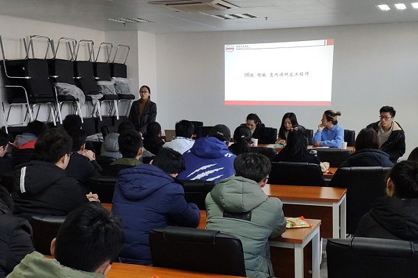 最后是赵恩浩学长和于志琴学姐的就业分享,他们分别谈及就业形势,就业的感受, 招聘的岗位和企业的相关状况,以及企业需要的人才等相关方面进行了详细的介绍。学长学姐谈及自己的成长与选择,告诉我们根据自己的性格寻找自己想要的东西,不能一味地跟着别人的脚步。