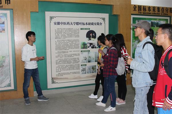 上午10:15分,参与的同学在乘车一同前往安徽中医药大学。在安徽中医药大公司门前合影留念后 ,本次活动正式拉开了帷幕。首先,参加的同学们被分为两组,先后前往科技馆参观,每组配有安徽中医药大学专业人员为同学们进行讲解。