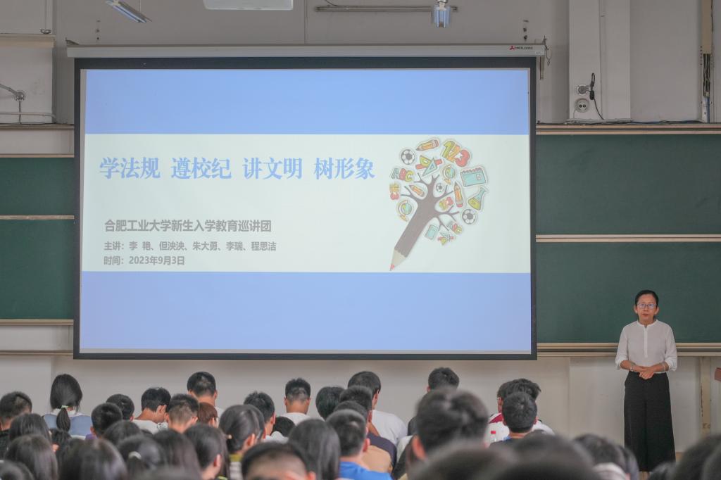 李艳随后为新生开展主题为“学法规 遵校纪 讲文明 树形象”校纪校规教育,引导员工树立法治思维,增强规矩意识,谨记制度规定,熟知文件精神,践行校园、宿舍、教室、餐厅及网络文明,争做有为青年。