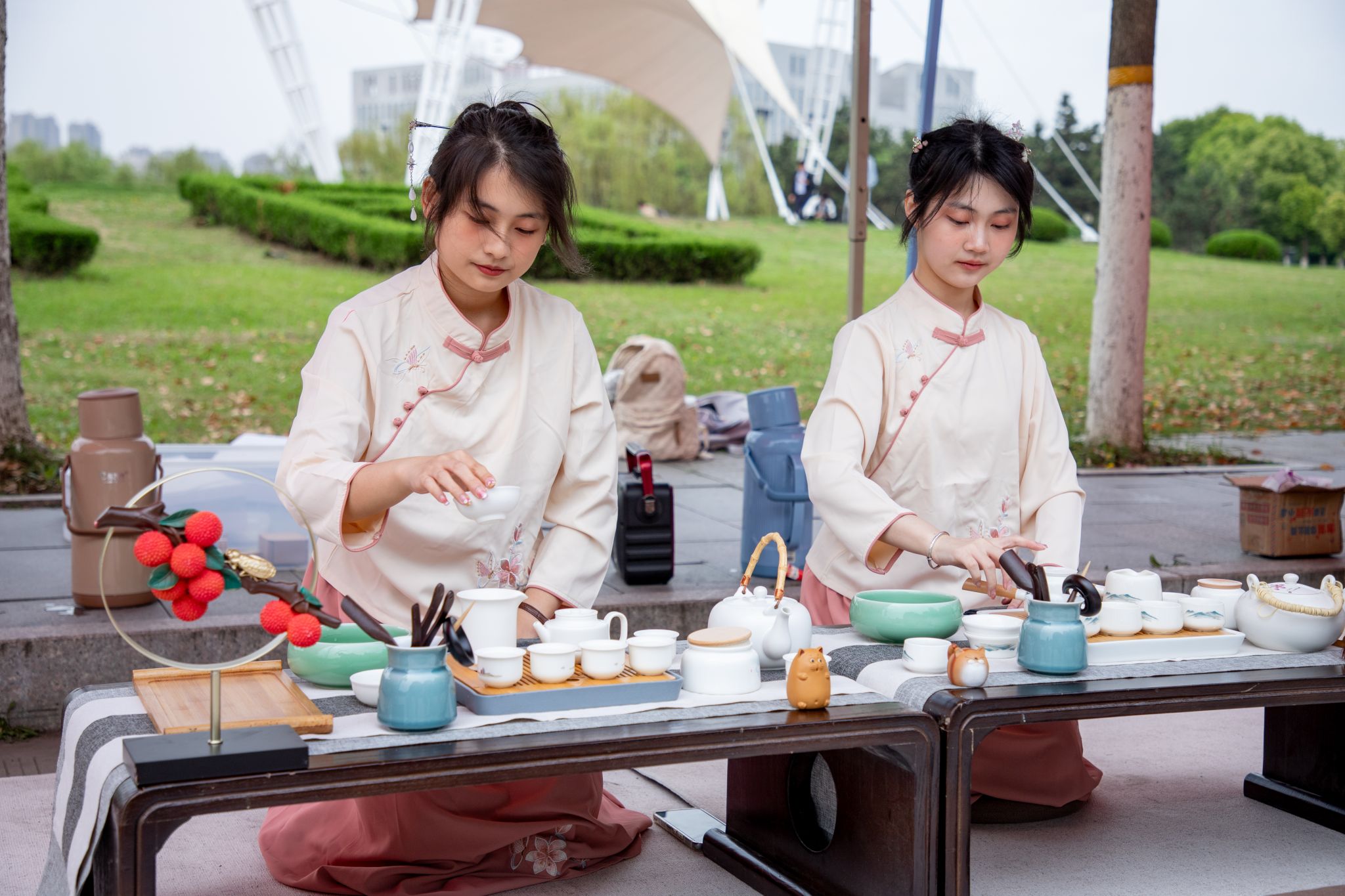 在“共话清茗,细品茶香”茶艺表演活动中,不少师生驻足观赏,与“茶道与茶艺”工作室成员一起品学中国传统茶艺表演,仔细品尝不同的茶品,细嗅一丝茶香,体悟一段茶韵,享受一场清新雅致的沉静,在艺术表演中提升鉴赏美的能力,感悟中国茶道精神,感悟茶道魅力。2022级食品科学与工程专业严江说到,“我被药食文化节游园会深深吸引了,这里不仅展示了丰富的中华传统美食知识,还有现场的茶道展示和中药香囊制作,让我大为感叹。我特别欣赏了泡茶的过程,感受到了传统技艺的精湛和对细节的极致追求。与同学们的交流中,我了解到了更多关于食物与健康的知识,这种寓教于乐的方式让我受益匪浅。整个游园会充满了学术氛围和生活气息,让人流连忘返。”