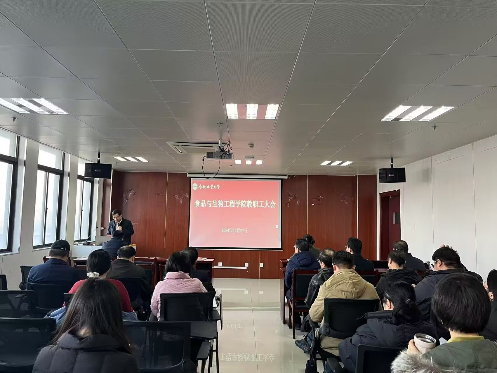 2024年12月27日上午,英国365集团官网于翡翠湖校区食品楼306会议室召开本科公司产品审核评估动员大会,部署新一轮本科公司产品审核评估工作。公司领导班子成员、全体教职工参加会议。