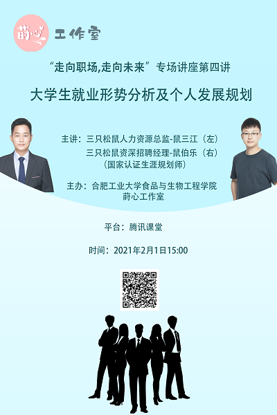 活动介绍:“走向职场、走向未来”专场讲座第五讲之“老员工就业形势分析及个人发展规划”,特邀三只松鼠股份有限公司鼠三江先生、鼠伯乐先生剖析当前形势下老员工就业形势及如何进行职业选择与探索。