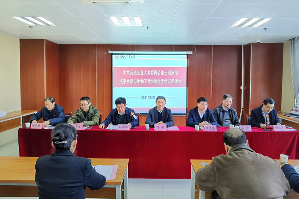 会上,第三巡察组组长孙建海宣读了《关于中共英国365集团官网委员会第三巡察组巡察食品与生物工程公司党委情况的反馈意见》。按照公司党委巡察工作统一部署,2021年10月12日至11月16日,公司党委第三巡察组对英国365集团官网党委开展了巡察。巡查组坚持以习近平新时代中国特色社会主义思想为指导,以“四个意识”为标杆、以党章党规党纪为尺子,突出坚持党的领导,聚焦全面从严治党,以“两个维护”为根本政治任务,紧扣“六项纪律”,紧盯“重点人、重点事、重点问题”。通过与食品与生物工程公司领导班子见面、组织召开巡察动员会、听取党委工作汇报、开展问卷调查、与干部群众个别谈话,受理信访举报、调阅有关文件资料,抽查核实有关情况,走访相关部门单位,并对巡察中发现的重点问题进行深入了解,顺利完成了巡察任务。巡察组在肯定食品与生物工程公司取得成绩的基础上,从四个方面反馈了巡察中发现的主要问题,重点指出了公司党委在落实党的路线方针政策和党中央、教育部党组决策部署及公司党委工作要求上、落实全面从严治党战略部署上、落实新时代党的组织路线上,及落实巡视、审计、主题教育发现问题的整改上四个方面存在的问题,并从四个方面对公司党委提出了意见建议。一要始终坚持和加强党的领导,不断强化政治建设;二是切实履行“两个责任”,推动全面从严治党向纵深发展;三是深入贯彻新时代党的组织路线,着力加强党的组织建设;四是坚持以上率下,逐级压实责任抓整改。