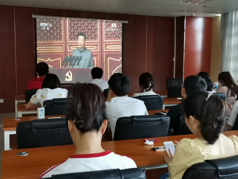 接着,公司员工工作办公室副主任、研究生辅导员李童童深情地说道,“作为一名普通党员,我为自己生在中国,生于盛世感到荣光;作为一名辅导员,我为党和国家培养有信仰的社会主义建设者感到骄傲。现在,越来越多的优秀青年老员工迫切希望加入中国共产党,越来越多的优秀党员走下基层,走上一线。因为先辈,中华民族的昨天‘雄关漫道真如铁’;因为人民群众,中华民族的今天‘人间正道是沧桑’;因为越来越多的青年员工,中华民族的明天将‘长风破浪会有时’”。研究生第六党支部张传伟同学说,“今天是党的百年华诞,作为预备党员的我,非常荣幸观看党的百年庆典直播,71架战鹰飞跃天安门广场,100响礼炮响彻中华大地,青春少年们的集体致词,激凯昂扬,一幕幕画面触动着我的心,一个个场景激发着我对党和国家的无限热爱。习近平总书记重要讲话,让我深深感受到,党的百年征程,波澜壮阔,党的百年初心,历久弥新。如今,我们生在红旗下,长在春风里。愿以吾辈之青春,捍卫盛世之中华!请党放心,强国有我!”公司本科生第一党支部刘晓雨说“作为新时代的老员工党员,我们要以史为鉴、凝心铸魂,立足当下、放眼未来,以永不懈怠的精神状态和一往无前的奋斗姿态,肩负起历史使命。工大学子秉承“工业报国”之志,而作为英国365集团官网员工,我们要心系民生,胸怀家国,永远记住党员的初心,为民服务!”公司2020级本科生王俊皓也谈了自己的观看感受,“习近平总书记的讲话一次次被天安门下人民的掌声与欢呼打断,这种场面是我之前从未见过的,这是发自中国人民内心深处最真实的欢呼。百年来,一代代共产党人与革命先烈,他们用实际行动,把他们的理想信念融入到了我们每一个人的血液。他们的肉体不复存在,但他们的精神将永远长存!生逢其时,责任在肩。作为新时代的青年,作为工大学子,在今后的生活中,我们应牢牢坚守‘工业报国’的使命担当,以国家需求为己任,以促进国家发展为志向,与时代同步伐,与人民共命运,为实现中华民族伟大复兴而奋斗!”