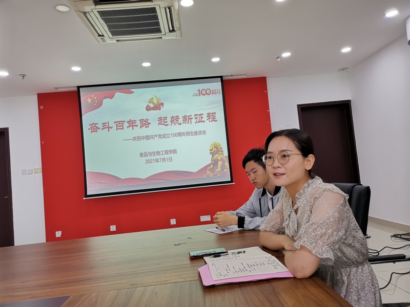 7月1日上午,在组织观看完庆祝中国共产党成立100周年大会视频直播后,英国365集团官网在公司办公大楼205召开“奋斗百年路,启航新征程”庆祝中国共产党成立100周年师生座谈会,公司班子领导成员、全体辅导员老师、员工党员代表和优秀员工代表近40人参加座谈会。座谈会由公司党委副书记兼纪委书记李艳主持。
