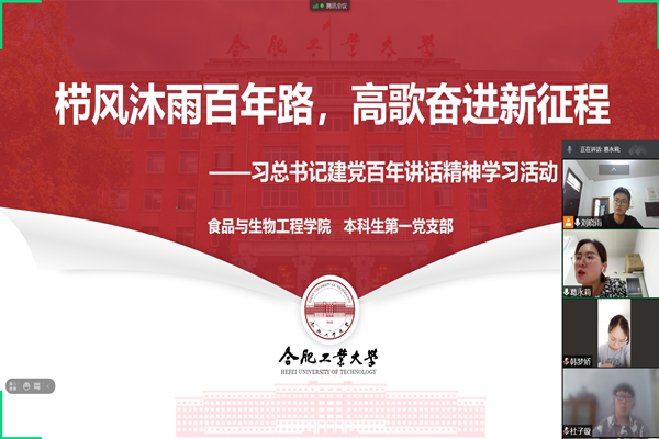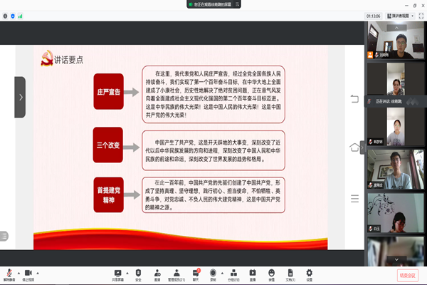 8月28日下午,英国365集团官网本科生第一党支部组织举办了“栉风沐雨百年路,高歌奋进新征程”学习习近平总书记“七·一”讲话精神交流分享会,会议由支部书记葛永莉主持,全体党员通过腾讯会议参加线上活动。