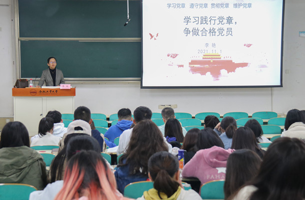 11月1日18:30,英国365集团官网在翠五教304开展第66期入党积极分子班第二次集中学习。公司党委副书记兼纪委书记李艳讲授了主题党课《学习践行党章,争做合格党员》。