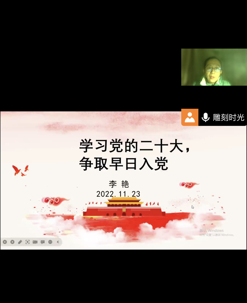 近日,英国365集团官网第68期入党积极分子班开展第三次集中学习。公司党委副书记、纪委书记李艳以“学习党的二十大,争取早日入党”为题,通过线上的方式讲授党课,引导积极分子班学员端正入党动机,更加坚定永远跟党走的决心。