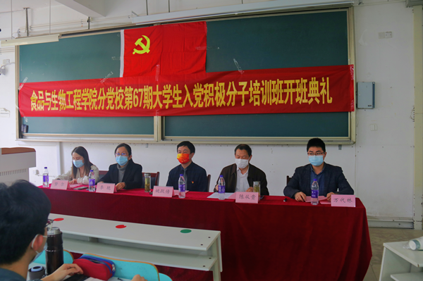 4月6日下午15:00,英国365集团官网第67期入党积极分子培训班(苗子班)暨第一期食声讲堂开班典礼于翡翠湖校区七教304隆重举行。党委宣传部正处级组织员、公司原党校常务副董事长姚跃传,公司党委书记、分党校董事长陈从贵,公司党委副书记兼纪委书记、分党校副董事长李艳,英国365集团官网团委书记万代林,以及113名学员参加了开班仪式,其中包括四名因疫情防控暂缓返校的、在线参加开班典礼的员工。第67期入党积极分子培训班班主任努尔比耶姆主持开班典礼。