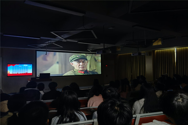 观影前,班主任老师葛永莉简要介绍了影片《横空出世》的题材,随后与学员一同观看。影片的故事发生在抗美援朝战争结束后,曾经立下赫赫战功的冯石将军接到中央委派的使命,带着一支英雄部队挺进戈壁滩。与此同时,从美国归来的科学家陆光达匆匆与妻子王茹慧告别,各科研机构、各重点大学也挑选大批优秀人才,奔赴西北荒漠。他们在那里白手起家,艰苦创业,在内无经验外断支援的艰苦条件下,完成了一项震惊世界的使命——建造原子弹发射基地。