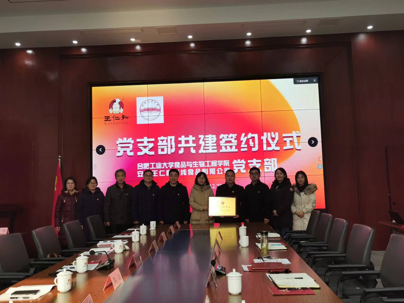 为深入学习贯彻党的二十大精神,推动党建与业务深度融合,以高质量党建引领高质量发展,12月29日上午,食品生物工程公司机关党支部走进安徽王仁和米线食品有限公司开展支部共建活动,举行签约仪式。食品生物工程公司党委书记陈树海、副经理郑志、副处级组织员齐明超,王仁和米线食品公司党支部书记王广际、副书记鲍偲硕,双方支部党员参加了本次活动。