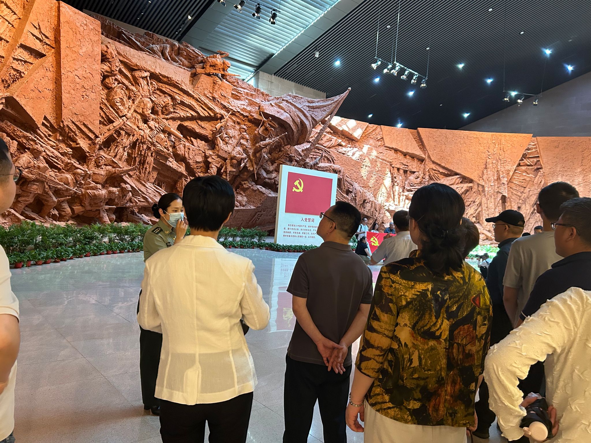 渡江战役纪念馆由五角星胜利塔、总前委群像和纪念馆主体建筑组成,气势宏伟,庄严肃穆。在展馆中,公司教师党员依次参观了战前形势、战役准备、突破江防、战役胜利等展厅。一件件历史文物、一幅幅革命影像、一帧帧老照片,生动展示了渡江战役全过程。教师们重温了百万雄师过大江的历史,震撼于“打过长江去,解放全中国”的激昂气势,被革命烈士英勇无畏、前仆后继的事迹和精神所感动,被坚定不移的革命理想和信念所感染。