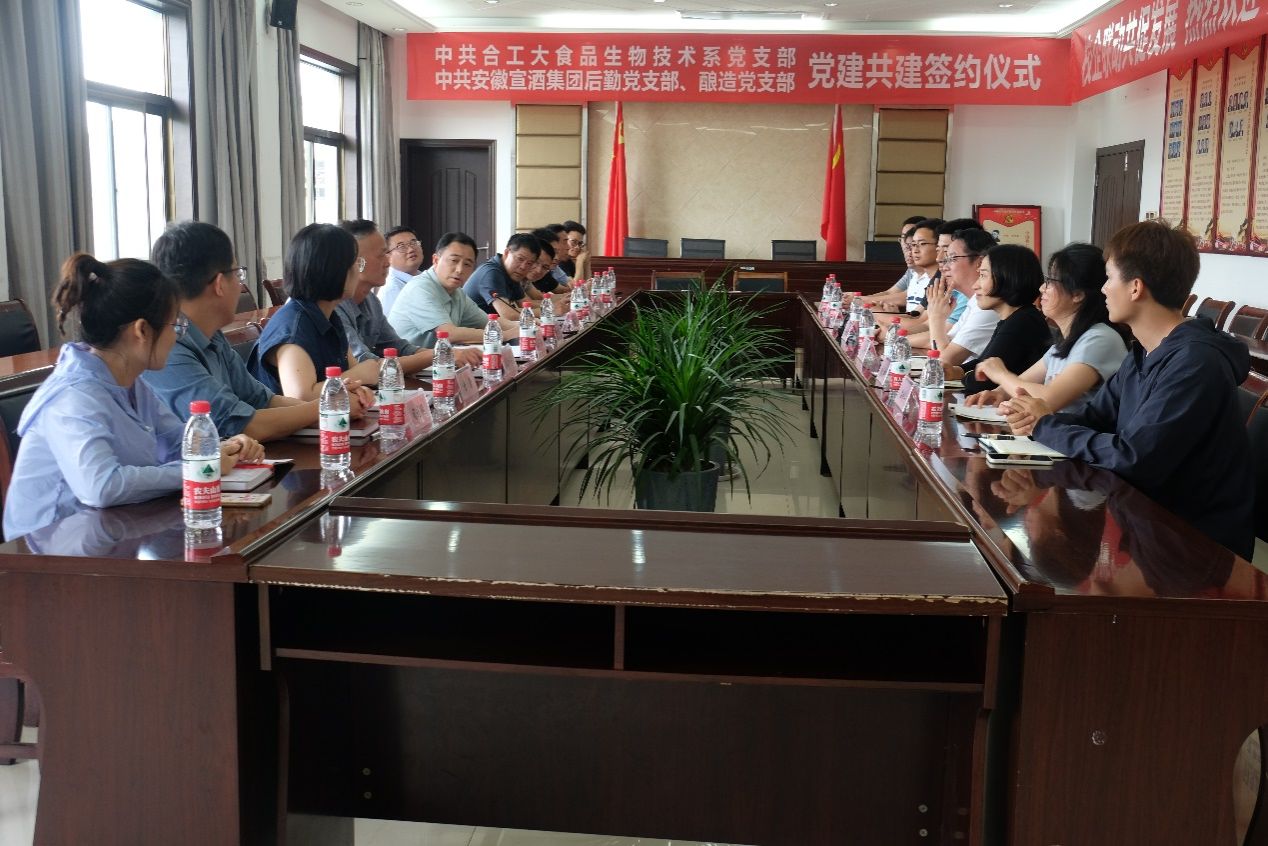 2024年6月7日,公司食品生物技术系党支部前往安徽宣酒集团股份有限公司开展支部共建活动。公司党委书记陈树海、副经理郑志,食品生物技术系支部书记李强明、系主任杨柳等多位老师,安徽宣酒集团股份有限公司纪委书记兼工会主席戴先国、食品安全总监张温清、后勤党支部书记人力资源部副总监姚中春、酿造党支部书记副总酿酒师王明生、副总酿酒师易俊等多位党员及技术骨干参加了活动。
