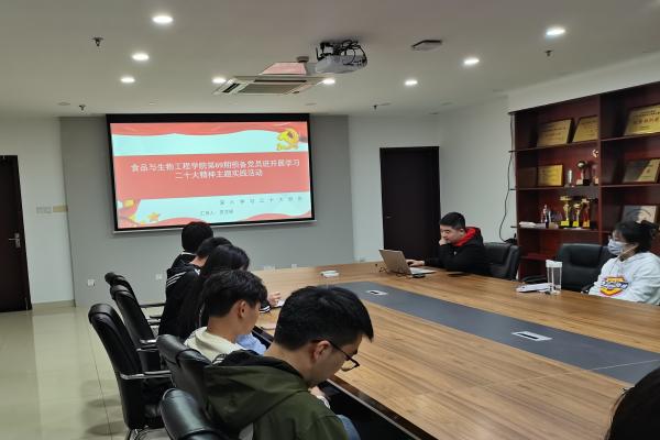 5月24日晚,英国365集团官网第69期党校预备党员班在食生楼205开展“学习二十大,食安在行动”主题活动。党校班主任华丽、第69期预备党员班学员及研究生第八党支部全体党员参加了此次党课学习。