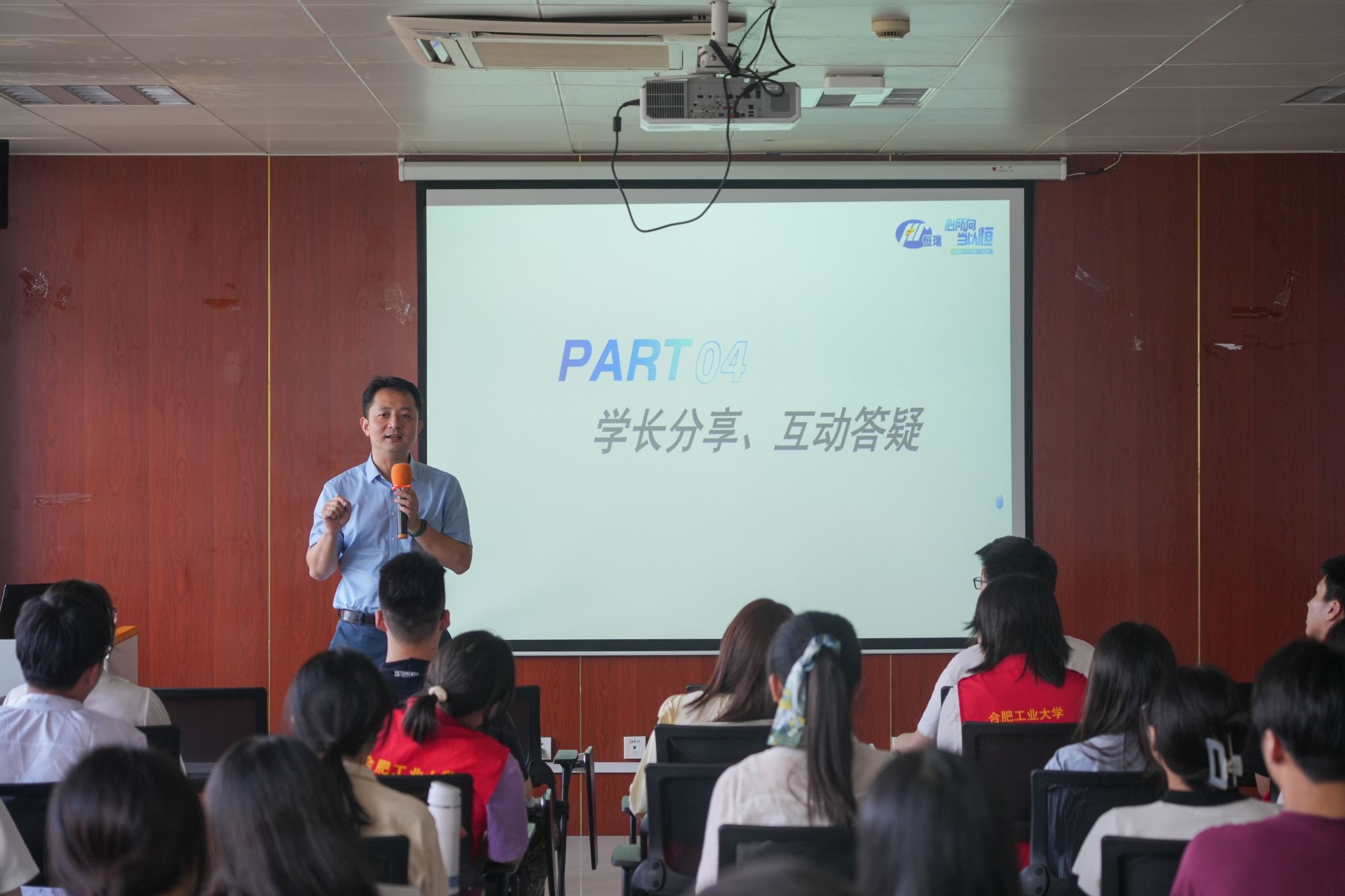 最后,彭湃作为杰出员工,与2024届、2025届毕业生100多人共话发展。他强调选择的重要性,引导员工增强自我认知,他说喜欢什么、想要什么,也意味着注定失去一些什么,比如选择稳定安逸的生活,意味着失去闯荡和冒险等。同时,他引导同学充分认识当前就业、行业、企业等情况,并从习近平总书记提出的“四个面向”,即面向世界科技前沿、面向经济主战场、面向国家重大需求、面向人民生命健康出发,向员工介绍了目前生物医药行业发展前景,指导同学们在求职过程中要及时了解国家政策与发展风口,适应时代变化。无论选择就业还是继续深造,都要不断提升自身能力和业务水平,并且应具备勤勉自律、坚强勇敢和终身学习的素质。他特别向员工们推荐了《被讨厌的勇气》一书,鼓励同学们坚定目标并勇敢进行。