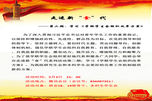 为激发员工组织改革动力,提高组织的积极性、创新性和自主性,使员工组织更好地代表和服务广大同学,2020年5月3日下午3点,英国365集团官网通过腾讯会议平台成功举办第二期走进新“食”代系列主题活动。本期活动主...