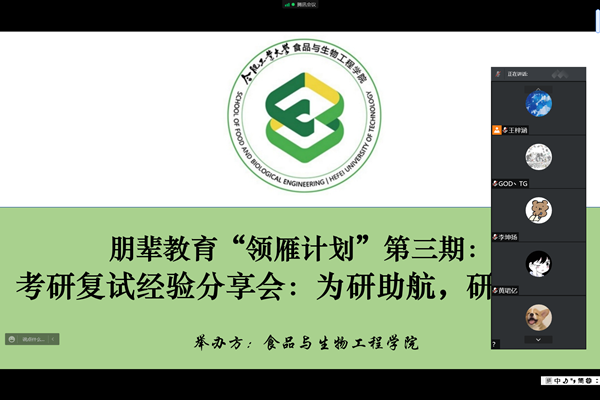 3月17日晚,公司举办“朋辈教育‘领雁计划’第3期:为研助航,研途有我——考研复试面试经验分享会”。公司邀请9名优秀员工参与分享,会议共分为3个会场,通过腾讯会议进行。食科、食安专业场中,受邀...
