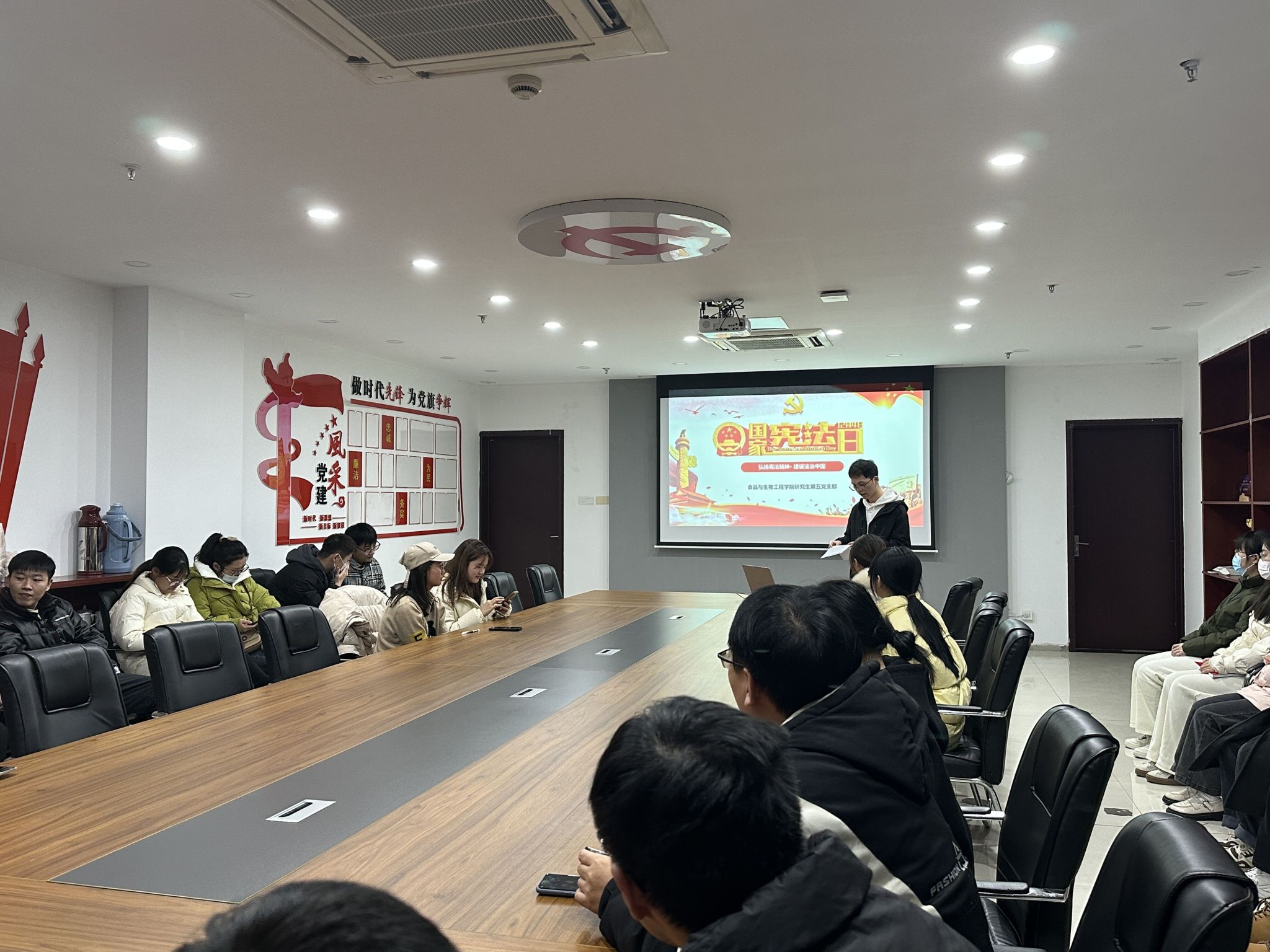 12月4日,公司研究生第五党支部在食生楼205会议室开展“弘扬宪法精神,建设法治中国”主题党日活动,支部全体成员参加。李阿想同学从《中华人民共和国宪法》的历史和地位视角,讲解了国家宪法日的由来及其设立意义,引导全体成员弘扬宪法精神,履行宪法使命。随后,带领支部成员通过中国普法微信公众号,重点围绕学习宣传党的二十大精神、学习宣传习近平法治思想、学习宣传宪法等主题进行在线答题,以赛促学,提...
