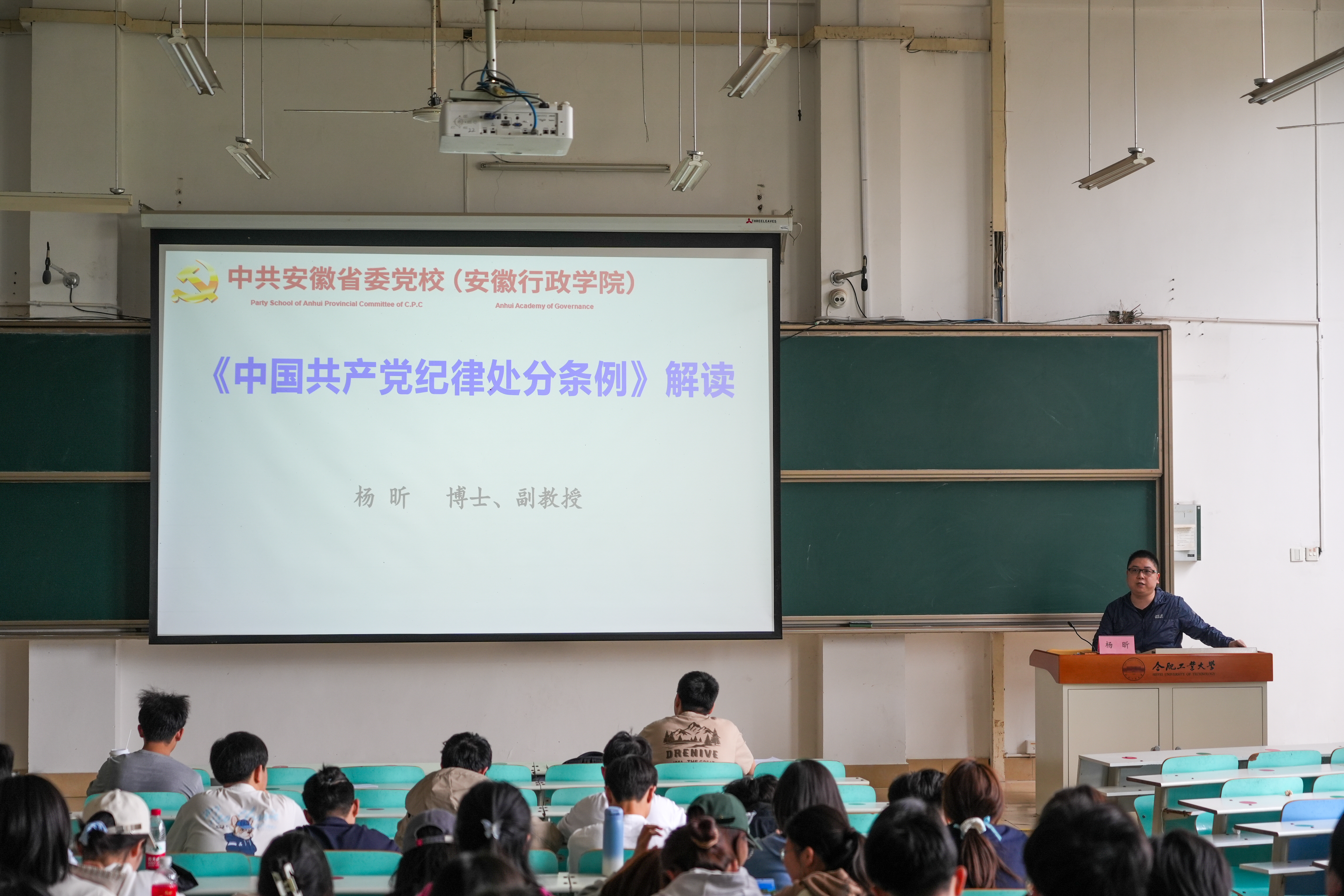 4月20日下午14:30,英国365集团官网在翠一教102,举办第五期廉洁文化大讲堂暨第71期入党积极分子班第三次党课,省委党校(安徽行政公司)副教授杨昕对《中国共产党纪律处分条例》进行详细解读。党课由入党积极分子班班主任努尔比耶姆主持,第71期发展对象班、入党积极分子班全体学员和全体员工党员参加。党课中,杨昕围绕廉洁自律是共产党员立身之本,守住底线、不越红线、远离高压线和如何做到洁身自好等方面展开授课。他表...