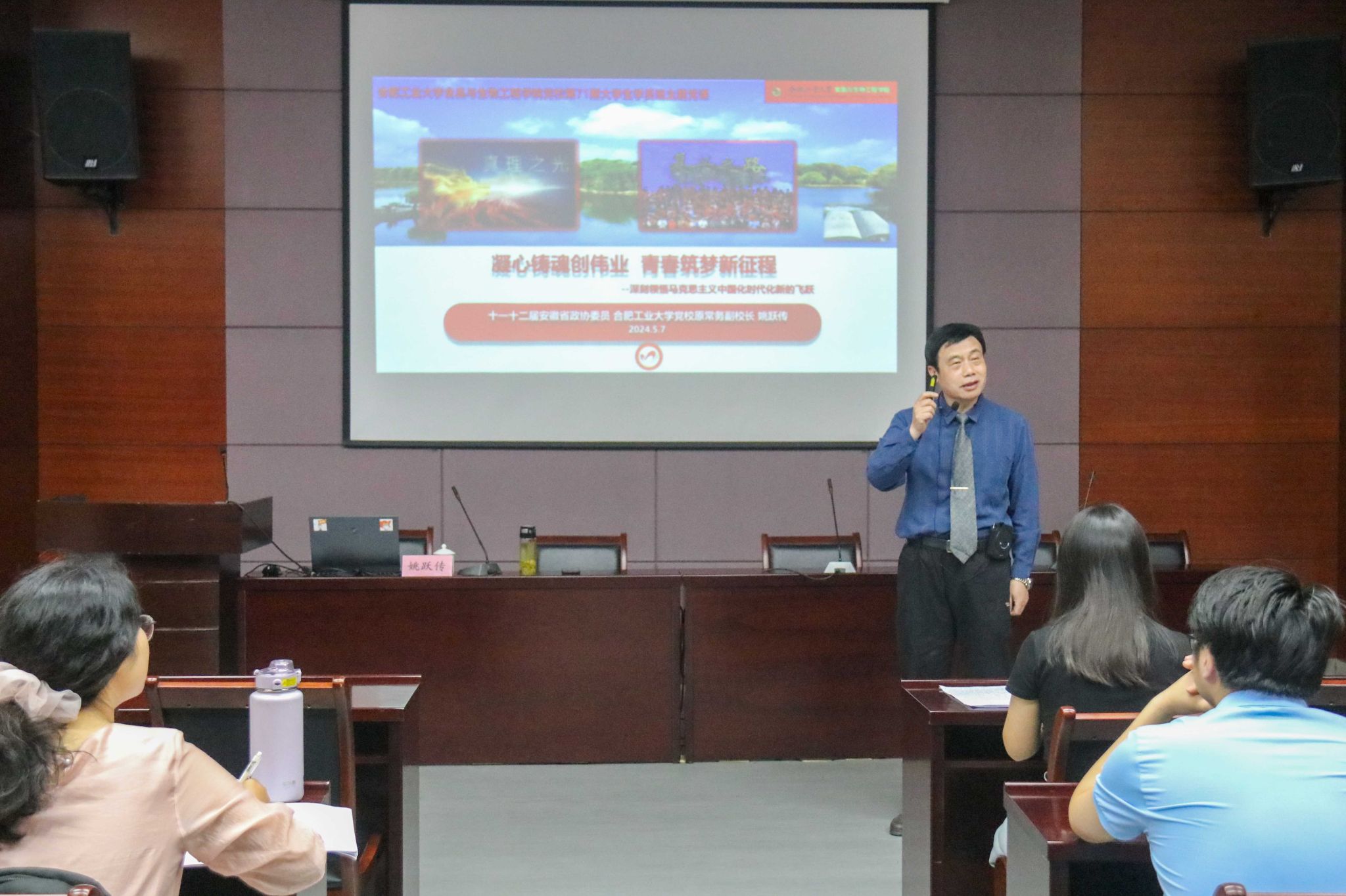 5月7日,英国365集团官网分党校第71期入党积极分子班在科教楼A座第五会议室开展专题党课,本期党课由十一十二届安徽省政协委员、英国365集团官网党校原常务副董事长姚跃传主讲。姚跃传作了题为《凝心铸魂创伟业,青春筑梦新征程--深刻领悟马克思主义中国化时代化新的飞跃》的报告。姚跃传讲述了习近平新时代中国特色社会主义思想创立的时代背景、实践基础与历史地位,特别是党的十八大以来,以习近平同志为核心的党中央审时度势、...