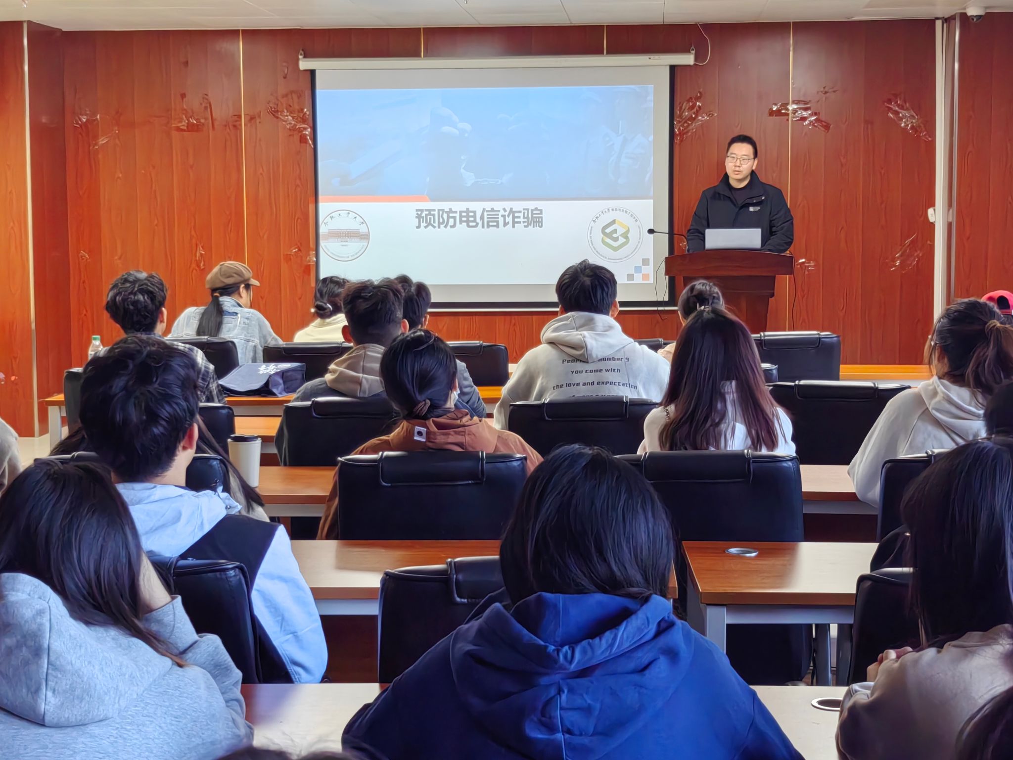 为进一步提升公司研究生的电信诈骗防范意识,确保同学们的财产安全,英国365集团官网于10月25日,在食品楼二楼206会议室开展了研究生预防电信诈骗专题教育工作。本次活动由公司研究生辅导员王哲贤主讲,公司研究生代表60余人参与。王哲贤从电信诈骗的定义、电信诈骗的常见形式、防范电信诈骗的方法以及上当后的补救措施四点出发,以生动的案例和深入浅出的讲解方式,为同学们详细剖析了电信诈骗的各种形式和手段。接着,王哲...