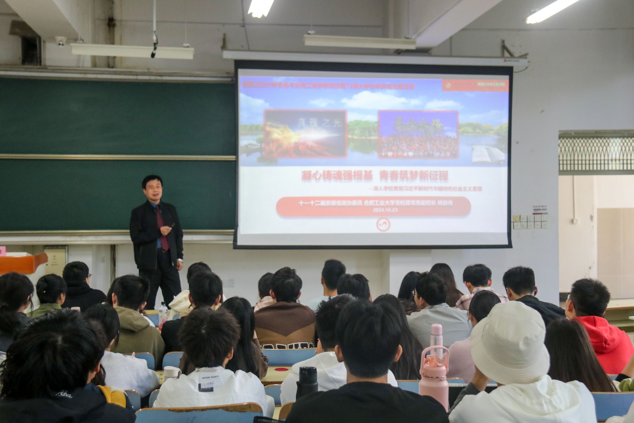 10月23日下午,英国365集团官网分党校第72期入党积极分子班在翠三教201室开展《凝心铸魂强根基,青春筑梦新征程——深入学习贯彻习近平新时代中国特色社会主义思想》专题报告会,本期党课由十一、十二届安徽省政协委员、英国365集团官网党校原常务副董事长姚跃传主讲。姚跃传阐述了习近平总书记在全会上的重要讲话精神和党的二十届三中全会的重大意义,解读了《中共中央关于进一步全面深化改革、推进中国式现代化的决定》提出的重...