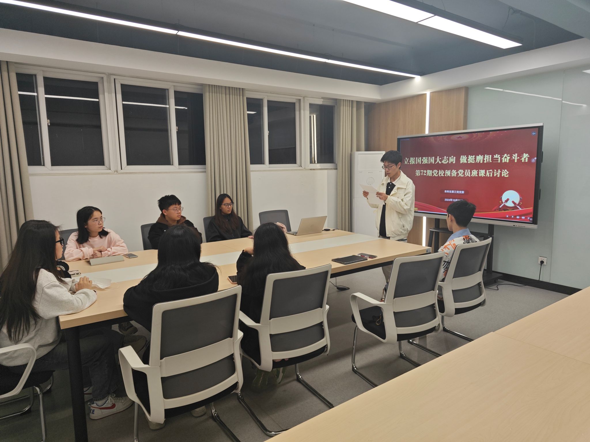 10月28日晚,英国365集团官网第72期党校预备党员班在翡翠湖校区一号楼员工社区会议室成功开展题为“立报国强国大志向,做挺膺担当奋斗者”的学习讨论。活动开始,学员们一起观看了爱国短片《如果奇迹有红色,那一定是中国红》,短片通过回顾建国初期的艰辛历程与当下的繁荣昌盛,缅怀先烈壮志,展望未来辉煌,展现了中华民族从站起来、富起来到强起来的伟大飞跃,激发大家对国家命运的深刻思考,并从中汲取精神力量。随后,...
