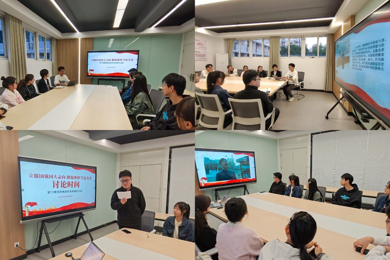 10月31日下午,英国365集团官网第72期党校预备党员班在翡翠湖校区二号楼员工社区会议室开展“立报国强国大志向,做挺膺担当奋斗者”主题讨论。活动开始,学员们学习了1935年张伯苓先生提出的“爱国三问”,观看了功勋模范人物的事迹视频,回顾了国家发展历程中先辈们的卓越贡献。通过深入研讨交流,学员们一致认为,爱国是立报国强国大志向的基础,做挺膺担当的奋斗者,是新时代老员工的使命与担当。随后,学员们围绕主题内...