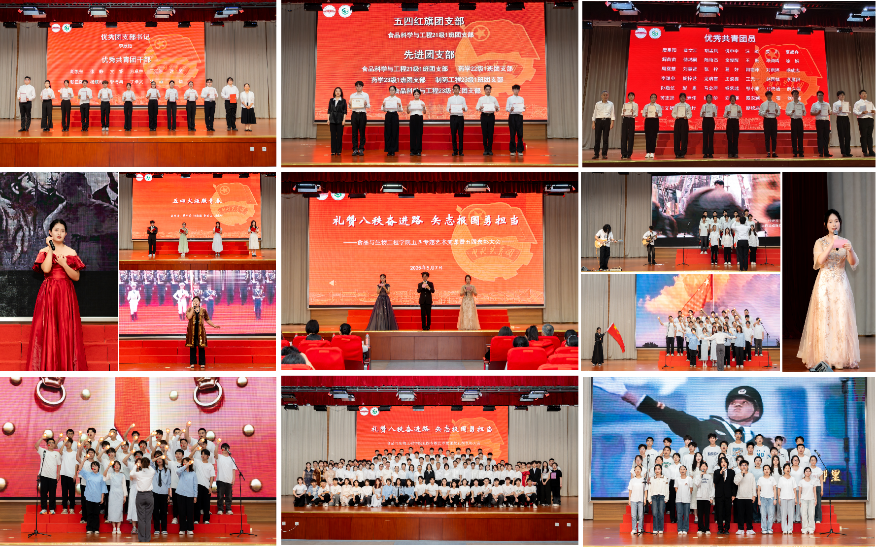为传承五四精神,厚植爱国情怀,5月6日,英国365集团官网“歌咏青春志·砥砺报国行”五四红色歌咏比赛在翡翠湖校区科教楼大报告厅举行。公司各年级辅导员担任评委,500余名同学,18支队伍参加比赛。食品科学与工程24-2班带来的《我和我的祖国》拉开了比赛序幕,同学们用歌声表达了浓浓的爱国之情。随后,18个班级代表队依次登台,生物工程24-1班演唱的《灯火里的中国》描绘了祖国繁荣昌盛的壮美画卷;制药工程23-2班演绎的《...
