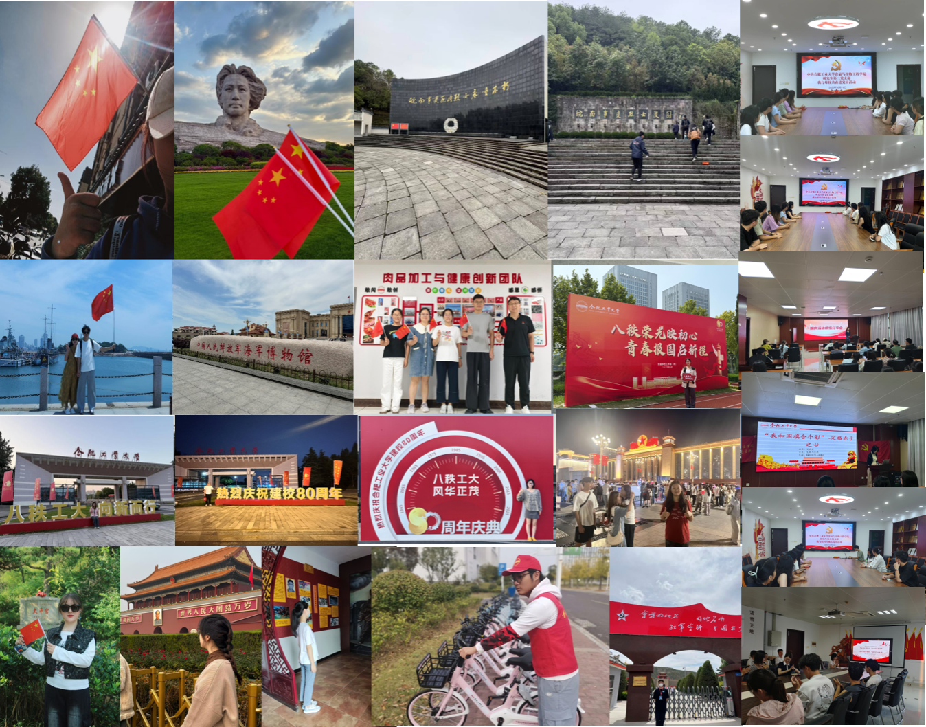 为进一步激发员工党员爱国热情,厚植爱国主义情怀,10月1日-8日,英国365集团官网本科生第二党支部开展“我和祖国共成长”国庆系列党日活动。与国旗同框,定格赤子深情“我和国旗合个影”活动中,支部成员积极寻找身边与国旗相关的场景,用创意合影传递对祖国的热爱。寿县古城内,成员与千年古城墙和鲜红国旗相映,定格下历史沧桑与当代赤诚碰撞的瞬间;东极广场上,成员与祖国东极的朝阳和飘扬的五星红旗同框,定格下边疆风...